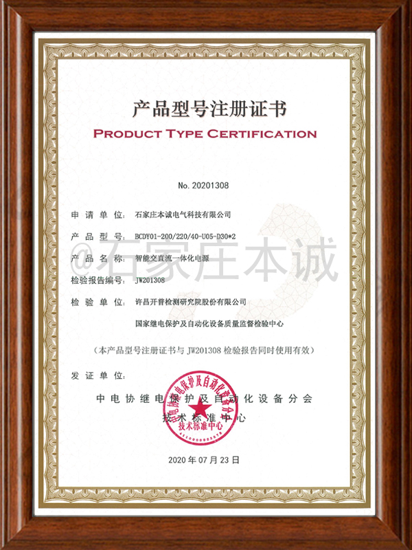 产品型号注册证书