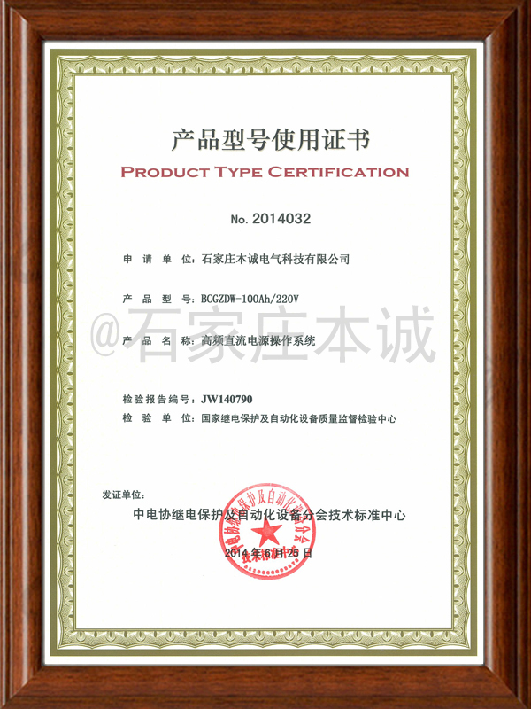 产品型号使用证书